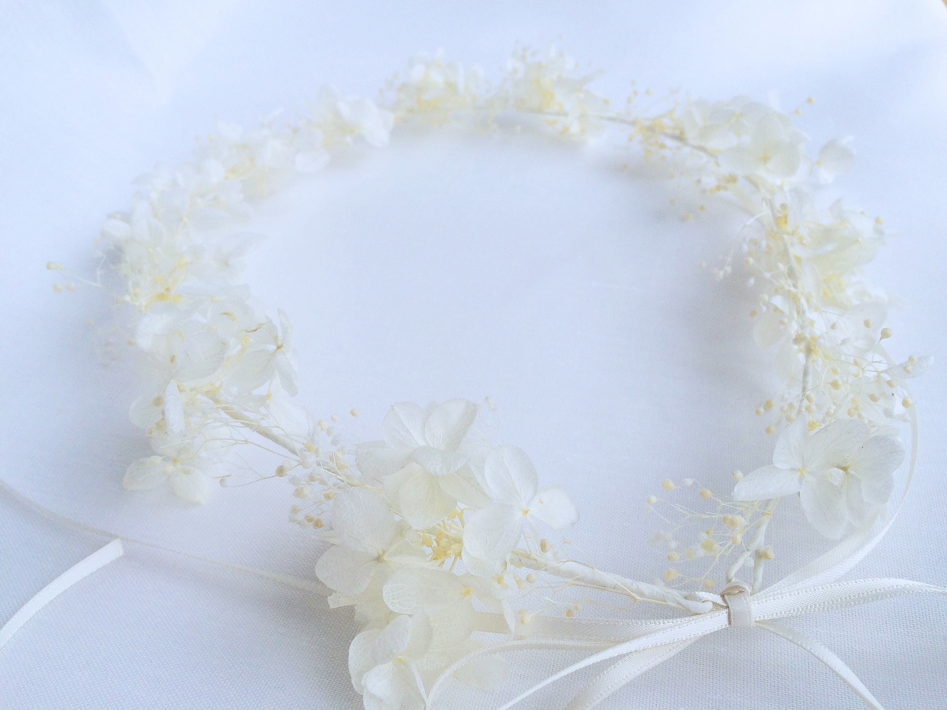 プリザーブドフラワーのアジサイとかすみ草の繊細で華奢な花冠